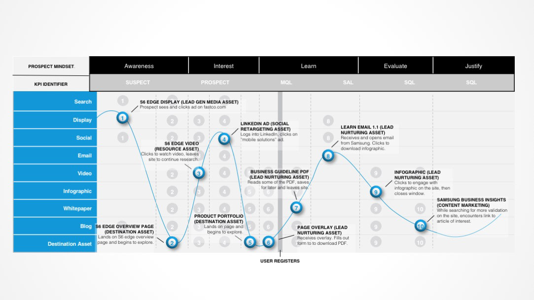 Illustrated the optimal digital experience Samsung must deliver to be most influential to business buyers on their pathway to purchase.